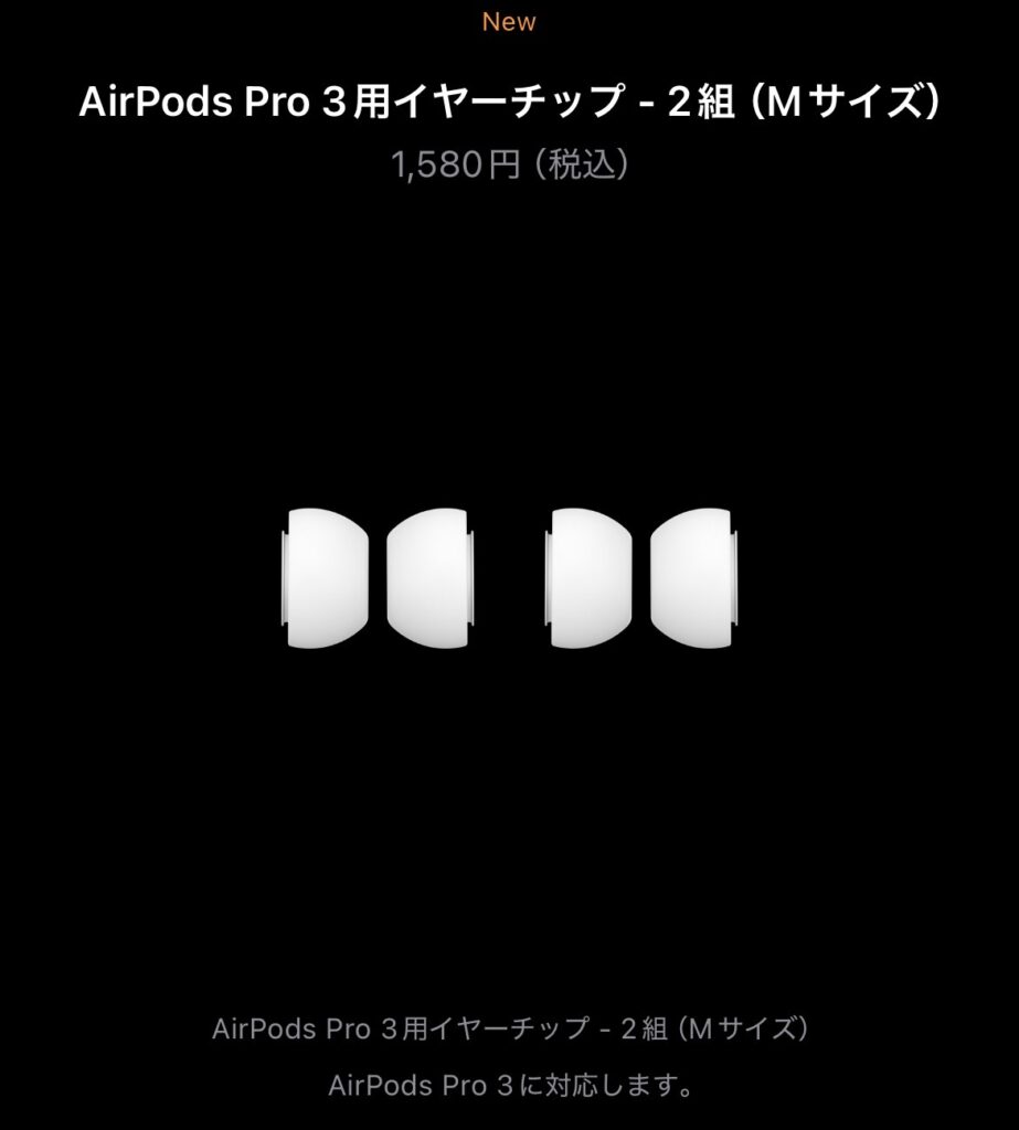 エラストマー素材で、体温で耳の穴にフィットするので、純正品でのぽろり落ちそうな気がするがなくなったので、定期購入して使っていました。XXS が追加されて 5サイズの展開となりました。アップルストア価格で 2ペア 1580円です。割と安い? かな?