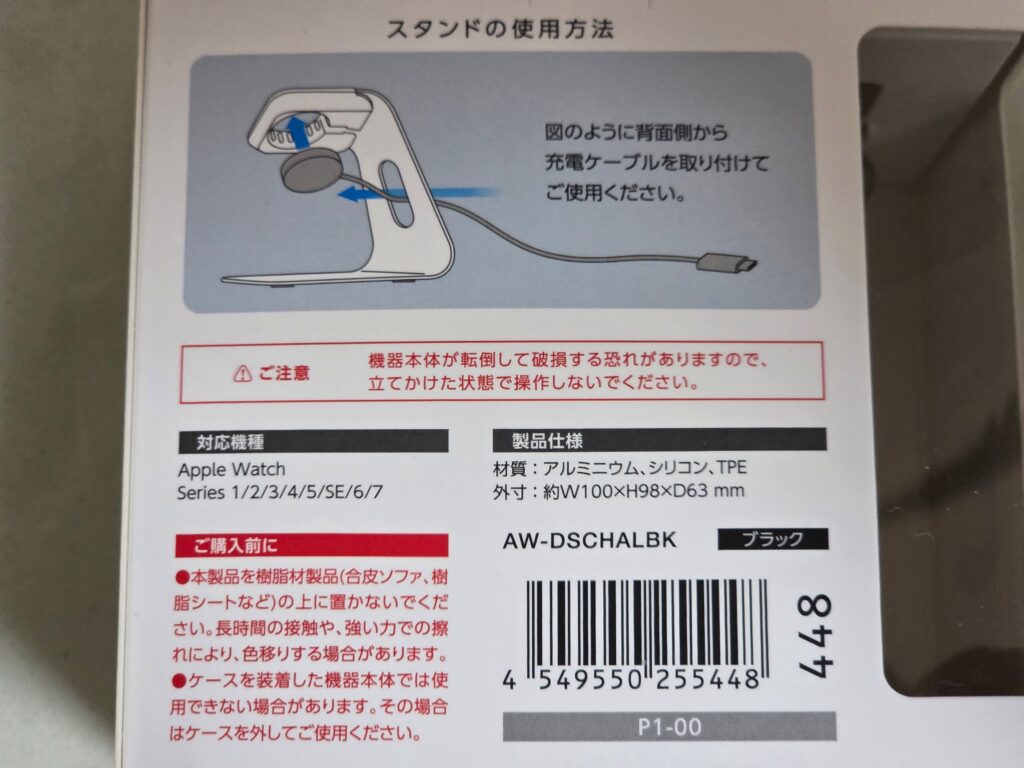 apple watch に付属する純正の充電器を組み合わせて使います。(TypeC版も USB-A版もどちらも利用可能)