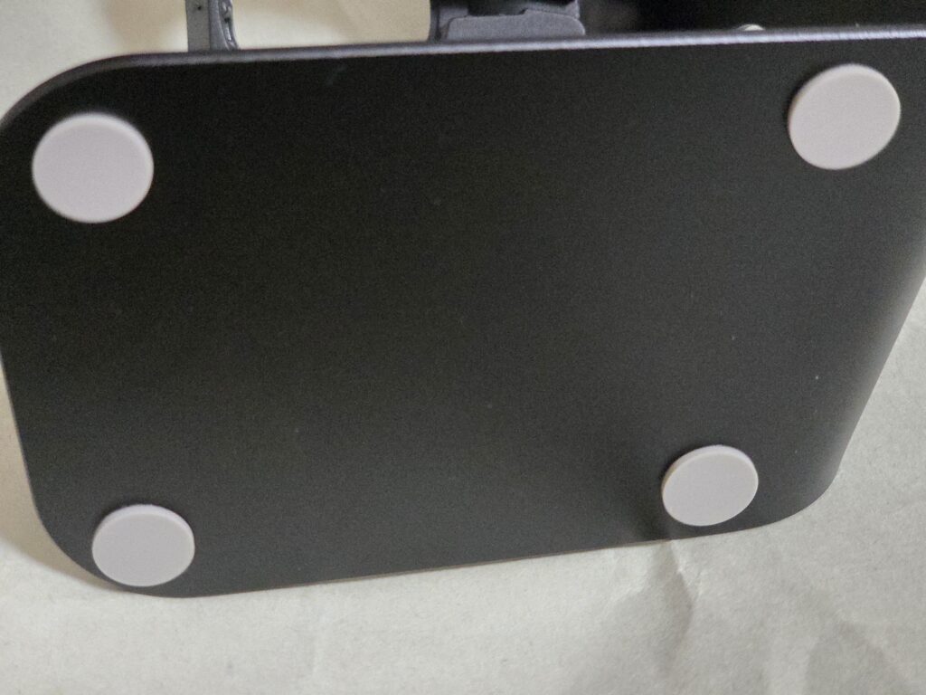 自分は特殊なベッドサイドテーブルを利用しているので、ゼムクリップで止めています。かなり安定。