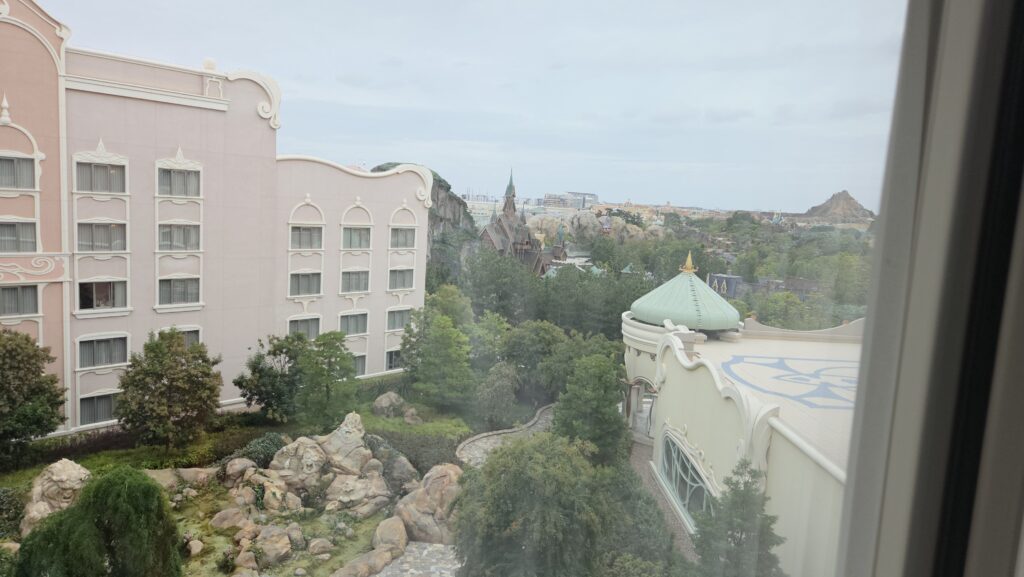 窓から正面は、客室ビューですが、斜め右を向くと、リクエスト通りアレンデール城が見えました。こんな感じ↓