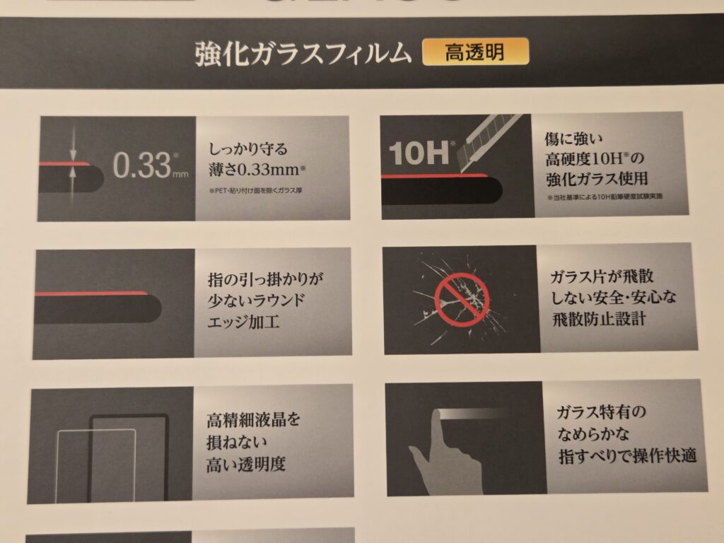 高透明 のガラスフィルムですが、ガイドフレーム付きが特徴です。