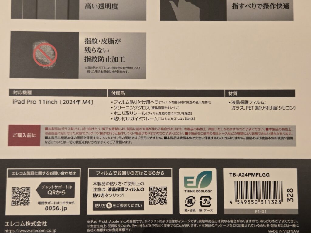 iPad Air M2(2024) 、M3(2025)、Pro M4(2024) を購入する時は、それ対応のフィルムを購入してください。Air M2(2024)の対応だけとか表記がなくても、Air M3(2025)、Pro M4(2024) でも利用可能です。