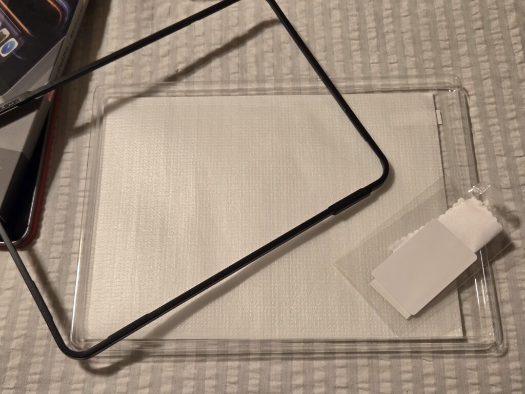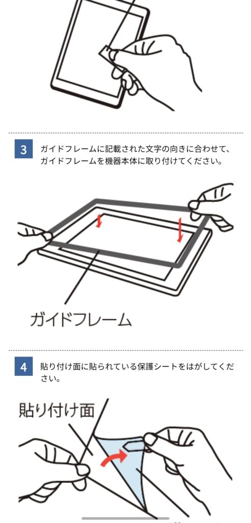 フレームを付けましたら、保護フィルムの画面側のフィルムを剥がします。