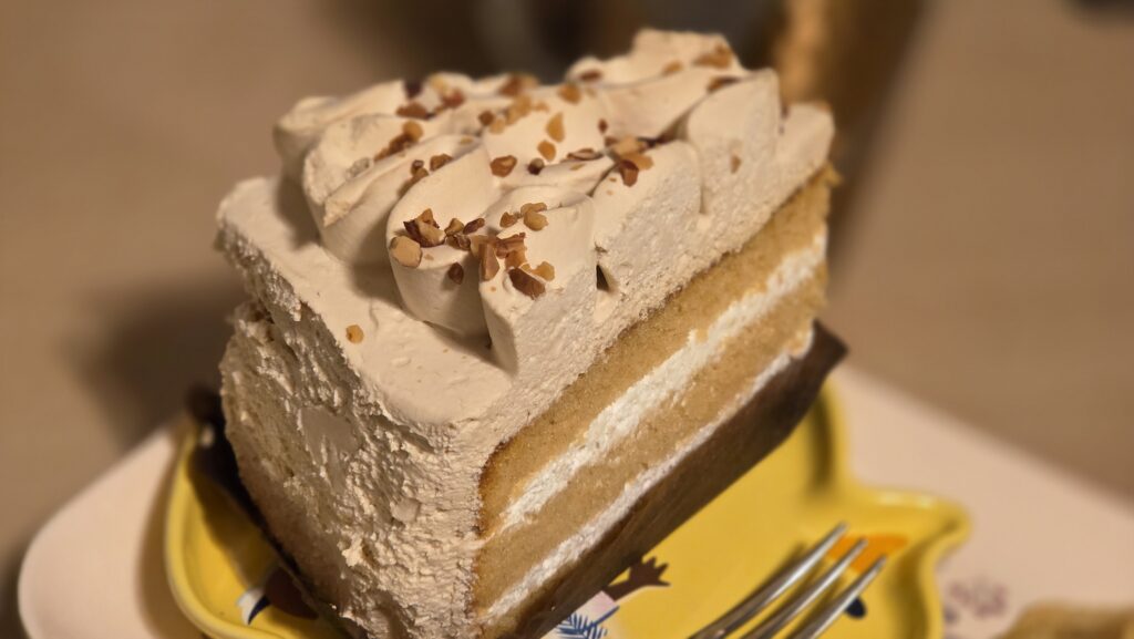 ホワイトモカケーキですが、ふんわり食感スポンジは、キャラメル風味。