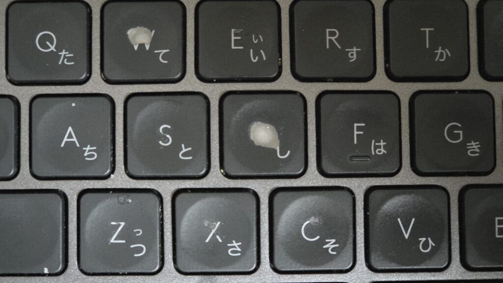 他のキートップも禿げたことも考えて、予備キーボードを購入するのが良いと思いました。