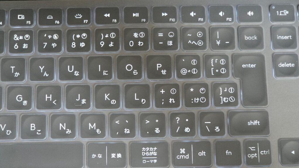 自分はかな入力(かな打ち)でブライドタッチですが、若干 logi の配列が他のキーボードより左側がズレているので、たまに印字を見る時があります。