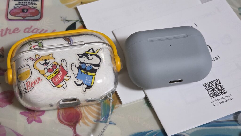 ケースの形状は airpods Pro3 の色違い程度の形なのですが、大きさが2回りくらい小さいです。