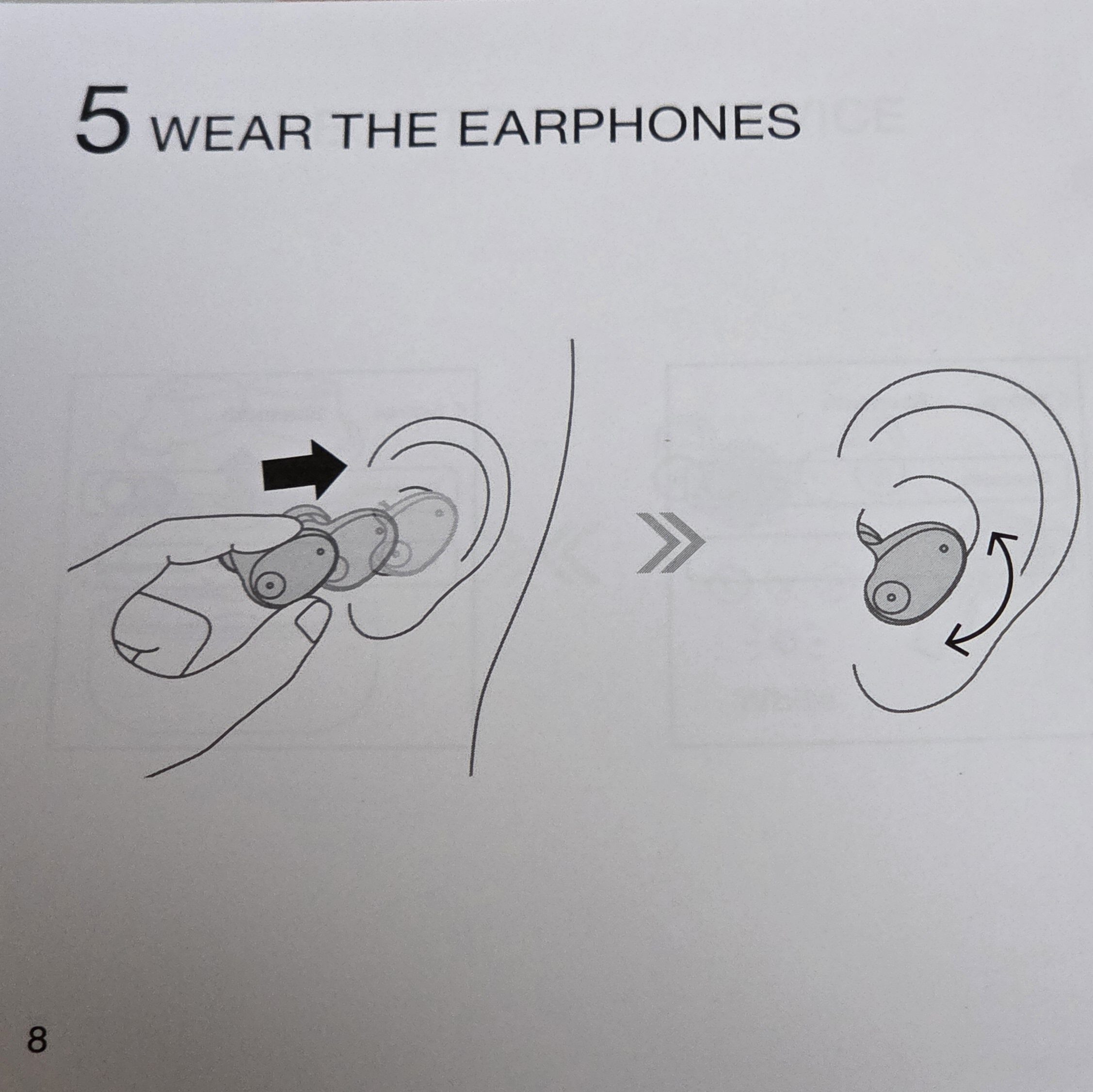 耳の穴に突っ込んで、捻って溝部分に収まるように装着します。