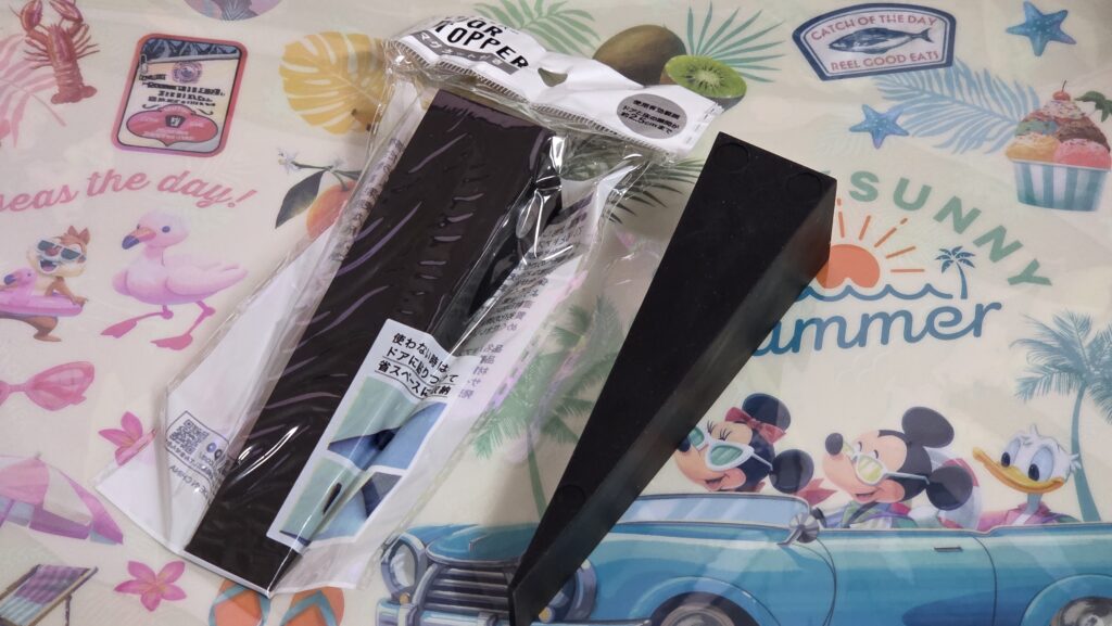 しかしスリットがある方を上にして、横置きするために、100均一でドアストッパーを2個購入しましょう。