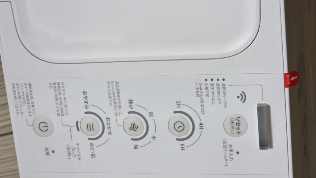 もちろんおやすみモードがあり、加湿能力が 1/3 になるが、ほぼだんまりのまま加湿するモードもありますので、夜中加湿派の方は安心してください。
