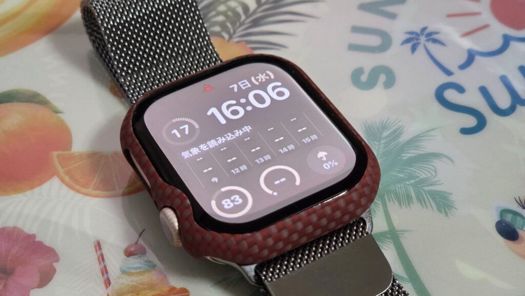 ・・・です。グレーツイルと迷いましたが、サンセットにしました。単色系のバリエーションが欲しいとは感じました。ちなみにケースをはめると地の色であるローズゴールドの露出度がほぼなくなります。