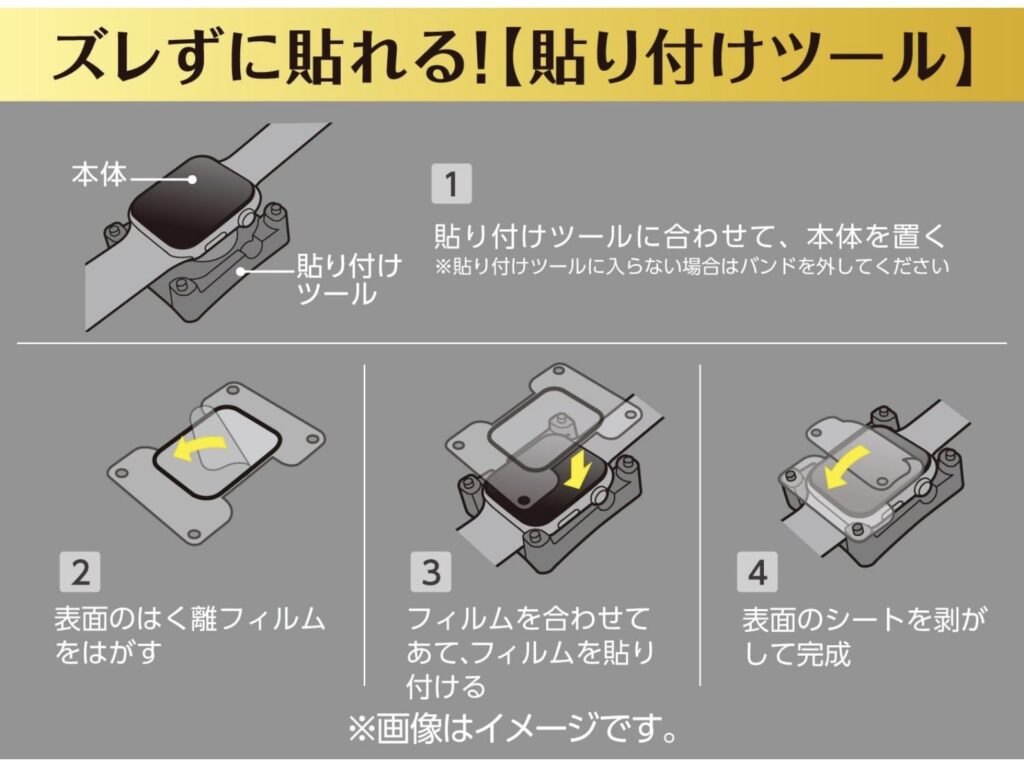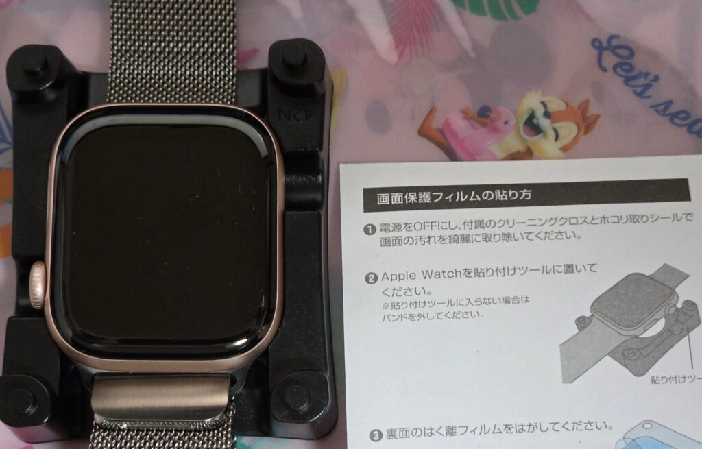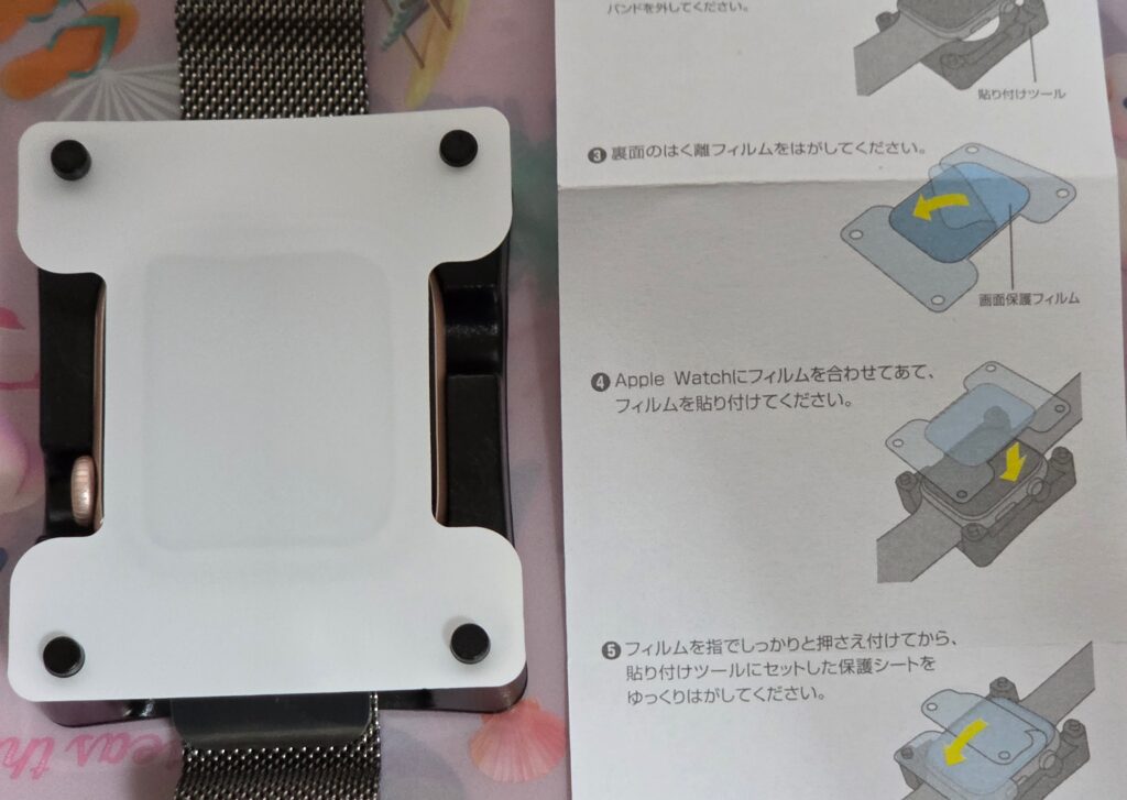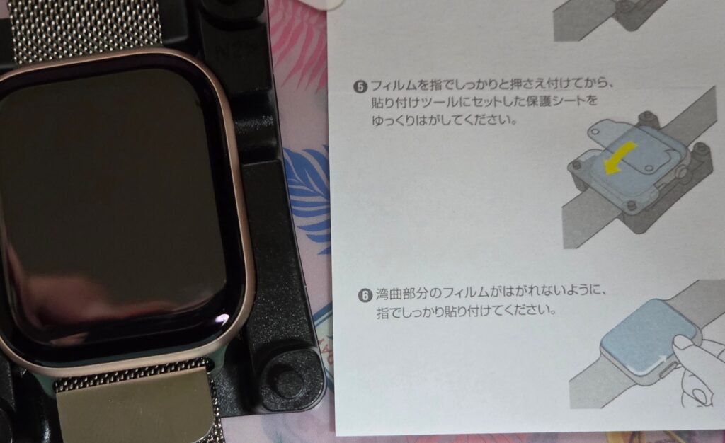 iPhoneやiPad のフィルムはあそびがあるので、1mm位ズレても 気にならないのですが、apple watch はその1mm が致命傷になりえる割合です。