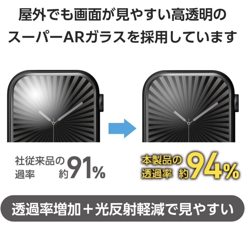 ケース買ったら フィルムも買ってみるかと同時に、series10用が 見切り価格で安く販売されていたので、エレコムさんのスーパーAR ガラスフィルム を購入しました。