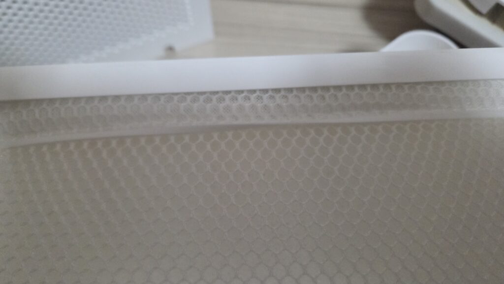 加湿フィルターの前後どっちか迷います。正解は、角が一箇所丸角になっている部分が奥側(タンク側)が正解です。写真を撮っておいて良かった。トレーを奥まで差し込んで、