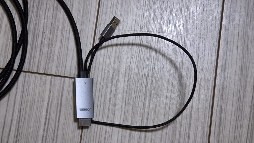 HDMI側に 給電用のUSBが付いていますが、パッケージでは短いですが、45cm 位の長さなので、switch2 のドックのUSB端子に届きます。