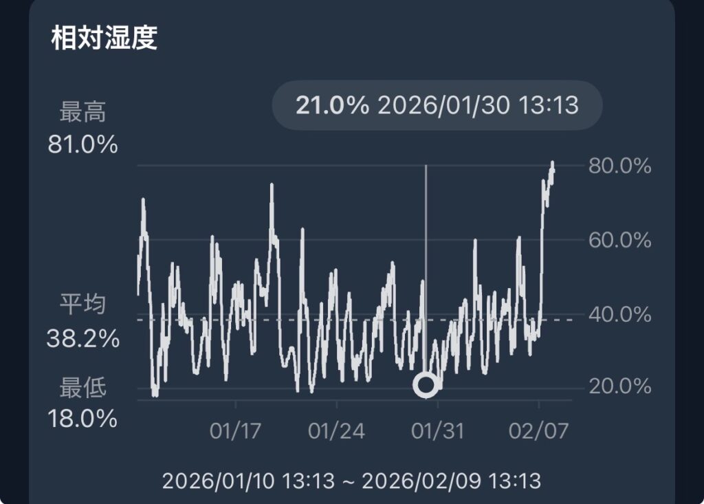 スマホで現在地の気温や湿度は知ることはできますので、それほど活躍する機会はないですが、アプリと連動しているので、記録される点はメリットですね。