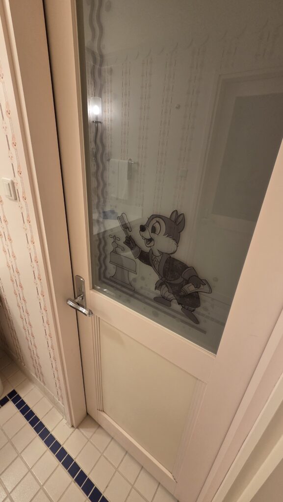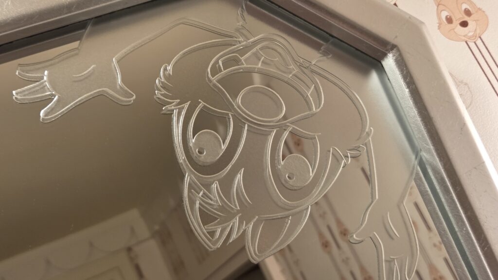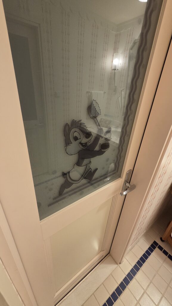 鏡やお風呂やトイレの扉にもチップとデール。