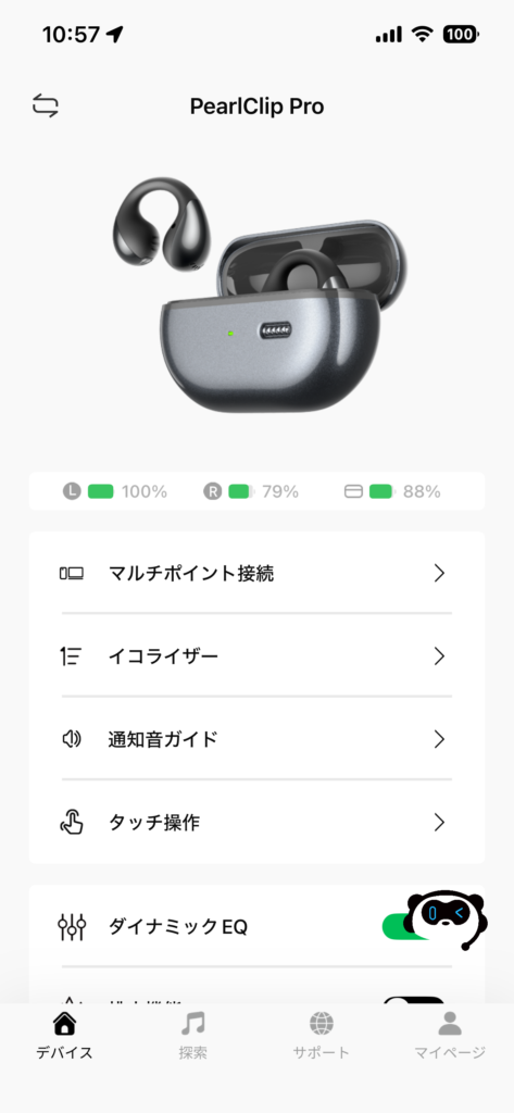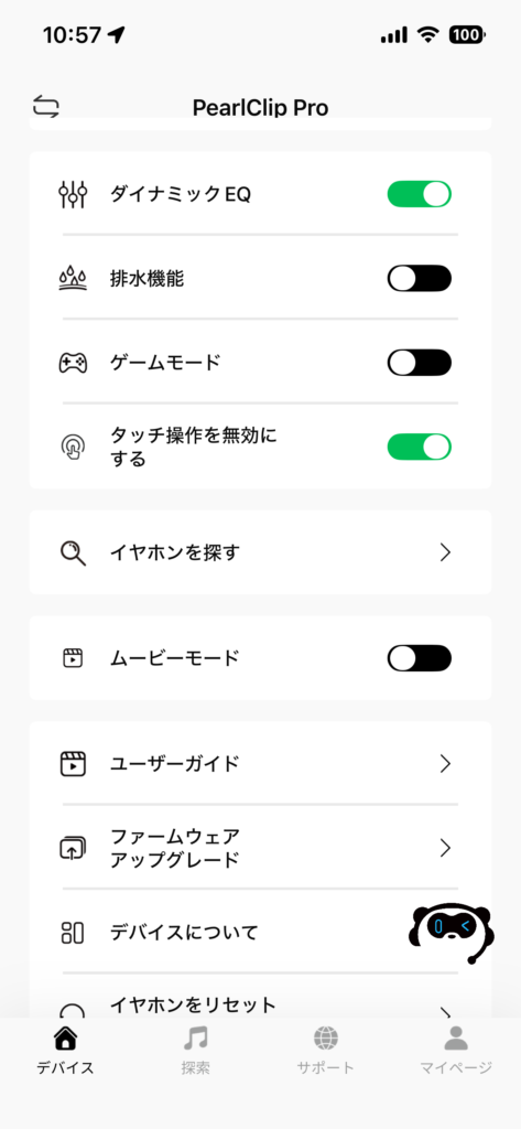 タッチ操作カスタマイズ、イコライザープリセットも豊富で個別に調整可能、いわゆるガイダンス音の言語と音量を調整可能、排水機能、ゲームモード、映画モード、マルチポイント設定