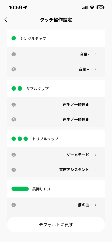 アプリで、全体無効化、LR独立して、シングル・ダブル・トリプル・長押し をカスタマイズ可能。